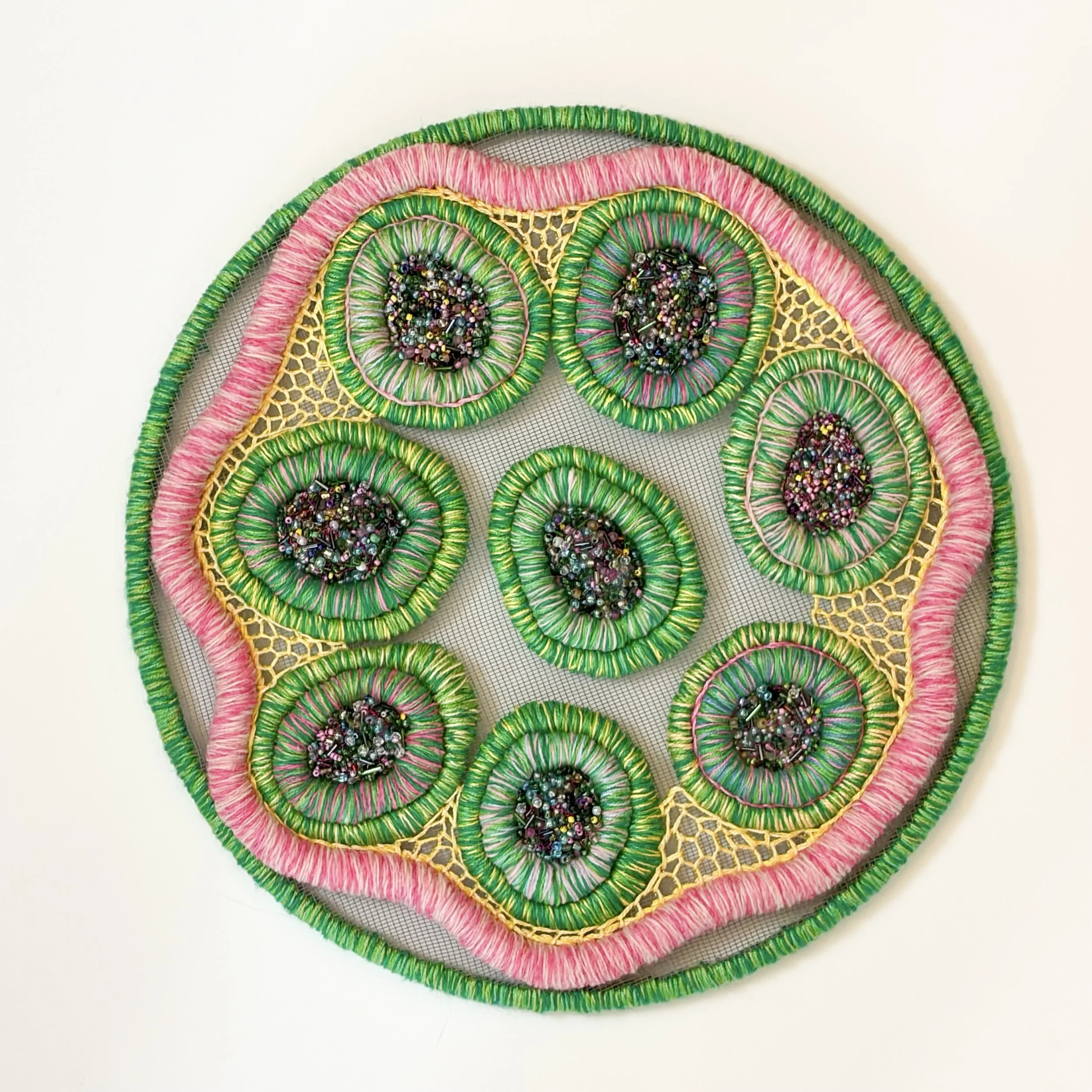 Each piece draws from a specific cell or biological process and highlights a woman who has studied its complex and disruptive nature. Like the cells that can both sustain and threaten life, these researchers often remain unseen. Their work confronts the fragile boundary between beauty and danger within the body.